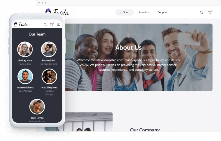Frida is designed specifically for handheld devices to help you convert more mobile shoppersAll AliDropship themes include