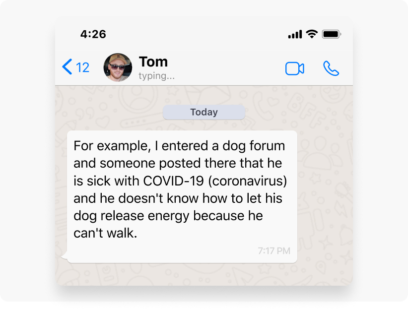 A prime example of Tom’s approach is his successful engagement on a dog forum. During a discussion, a fellow forum member mentioned struggling with COVID-19 and being unable to walk his dog.