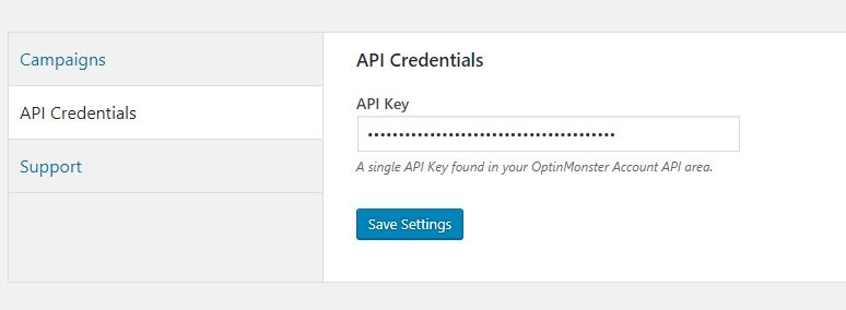 Now, you need to connect this plugin with your OptinMonster account. In order to do this, you need a special API key.