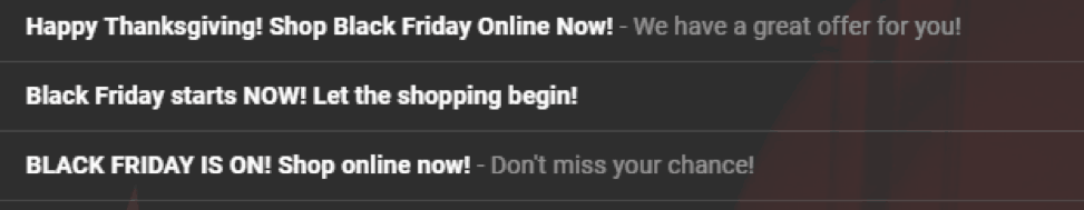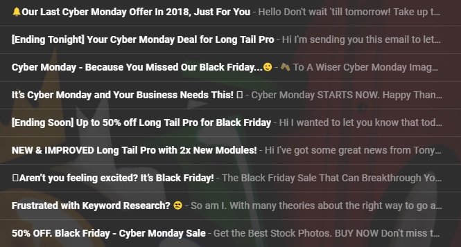 Here is a screenshot of my personal mailbox and what emails I received on Black Friday.