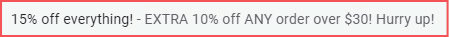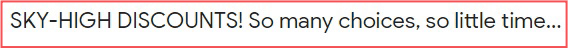 People will not know on what products or product categories you offer a discount and what exactly the “sky-high discounts” mean. As for me it means that I get a product with at least 30% discount while my mother thinks that the discounts should be not less than 70%. However, after opening an email and seeing “15% OFF” we both will be disappointed although a discounted price is ok. Why? Because we have expected another offer.