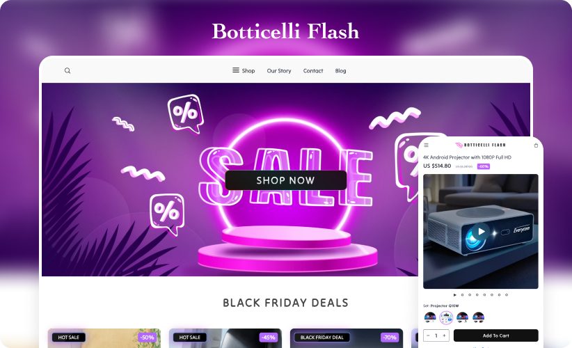To maximize your Black Friday success, ensure your store looks attractive to draw in customers. We’ve prepared special themes that resonate with the festive spirit of the event. These themes are not only visually compelling, featuring bold colors and dynamic banners, but are also optimized for mobile devices to ensure a seamless shopping experience on smartphones.