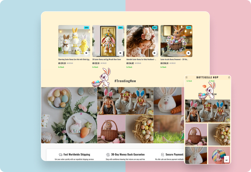 We are excited to introduce our “500 Egg-cellent Easter Products & Cutest Store Design” package, designed to give your store a complete Easter makeover. This comprehensive solution not only refreshes your product offerings but also transforms your website with a charming, festive design that captures the spirit of Easter. This dual update ensures your store becomes a go-to destination for all Easter shopping, enhancing both customer experience and sales.