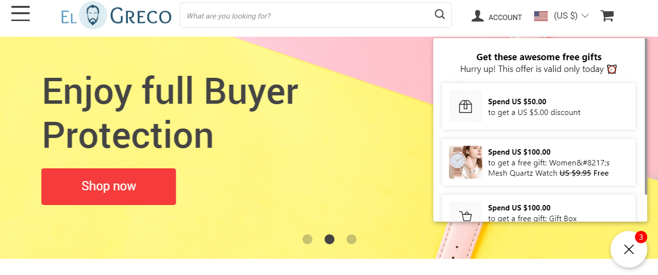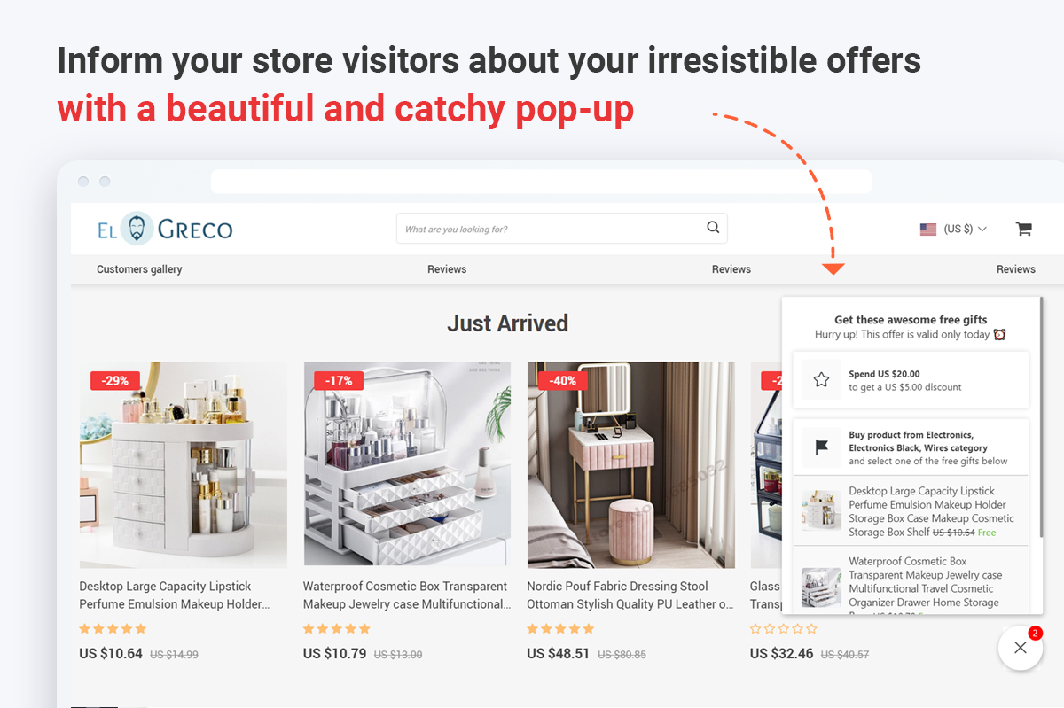 Show all your gift offers on a catchy and attractive pop-up for a better user experience