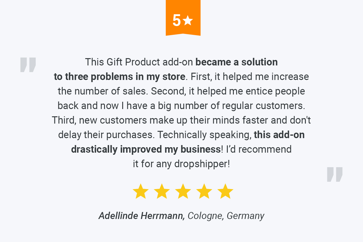 Meet Gift Box add-on – a simple solution to reward your customers with gifts that encourage clients to act now and to buy more. Set up your own rules of giving gifts and increase the revenue of your dropshipping store greatly!