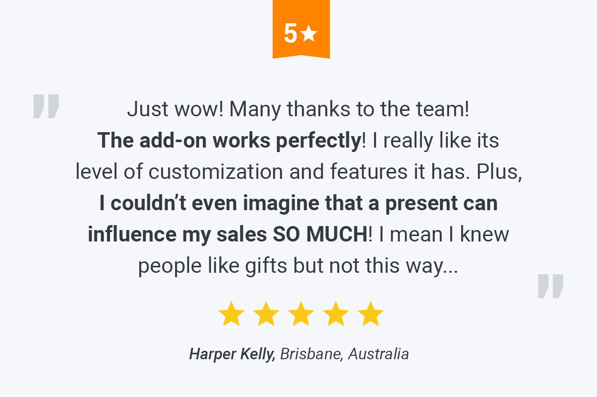 Plus, Gift Box add-on automatically recalculates how much more a customer needs to spend to be rewarded with a gift, motivating visitors to order more and more.