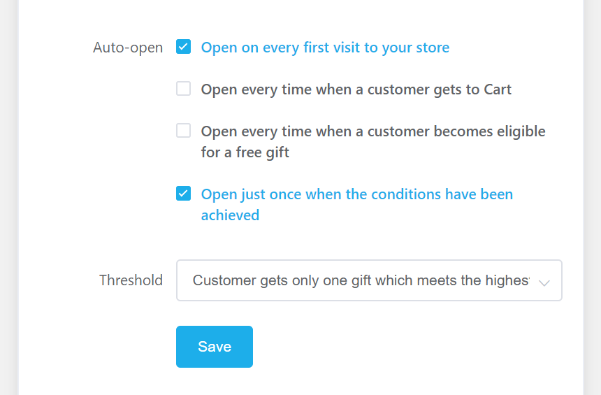 You don’t have to worry your shoppers won’t notice your gift offers. With the auto-open feature, you can select when they will be reminded about your irresistible offers.