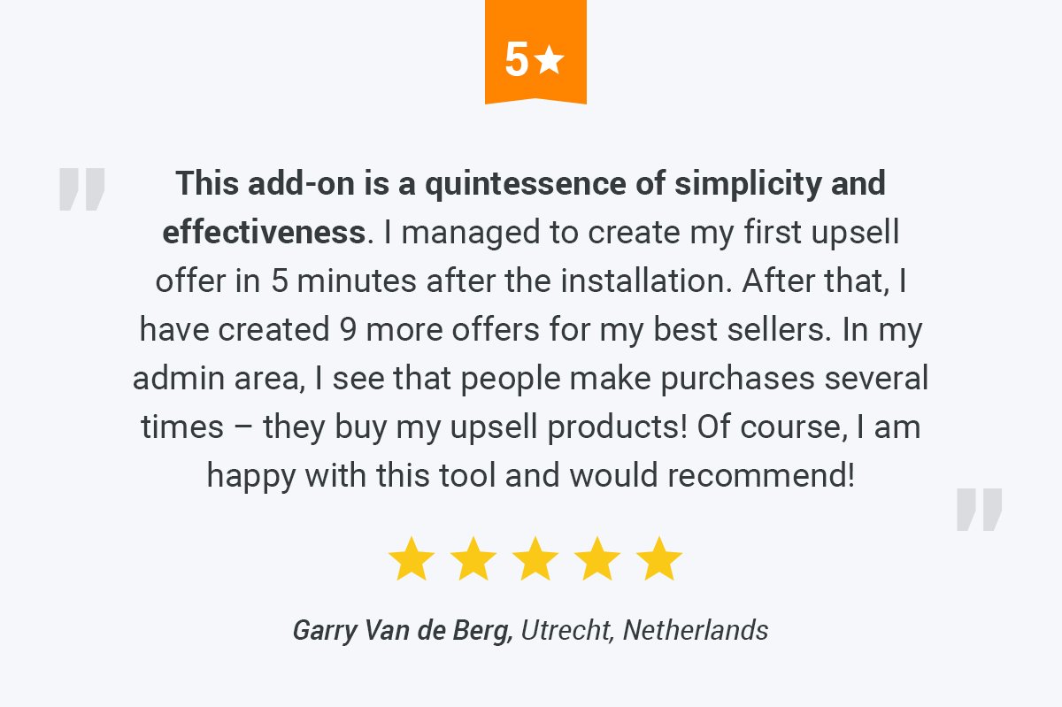 Encourage your customers to buy more from you with the user-friendly Purchase Upsell add-on.