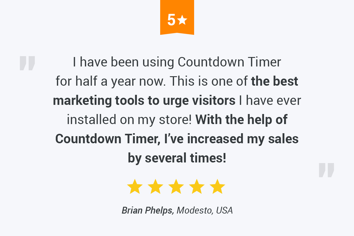 Thanks to easy customization, you can create a unique timer suitable to the look and feel of your online store. Choose from seven appearance options and six color themes, in addition to custom text options like font and color.