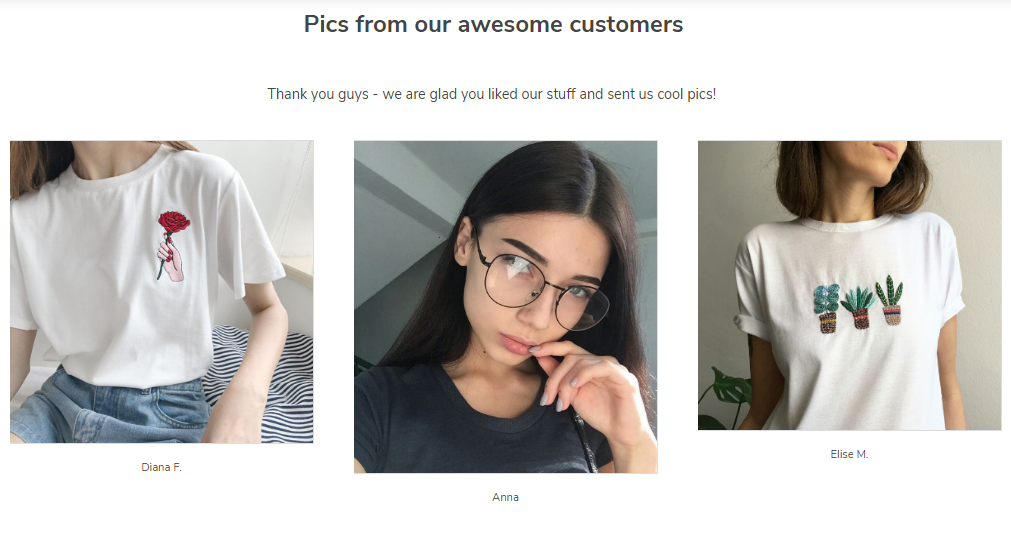 Motivate your store visitors to make a purchase by showing them how your items look in real life by sharing images of your happy customers.