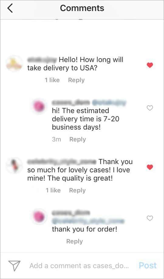 Step 7. Duplicate this post in your store’s Instagram account and answer all the comments