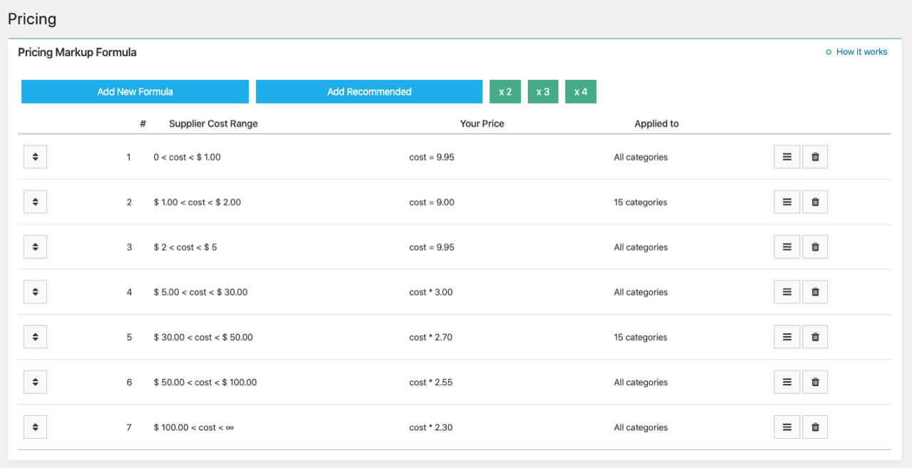 To set the prices, I was using the default AliDropship pricing formula initially. Once I got a better understanding of my target audience and the market, I started modifying the formula a bit: