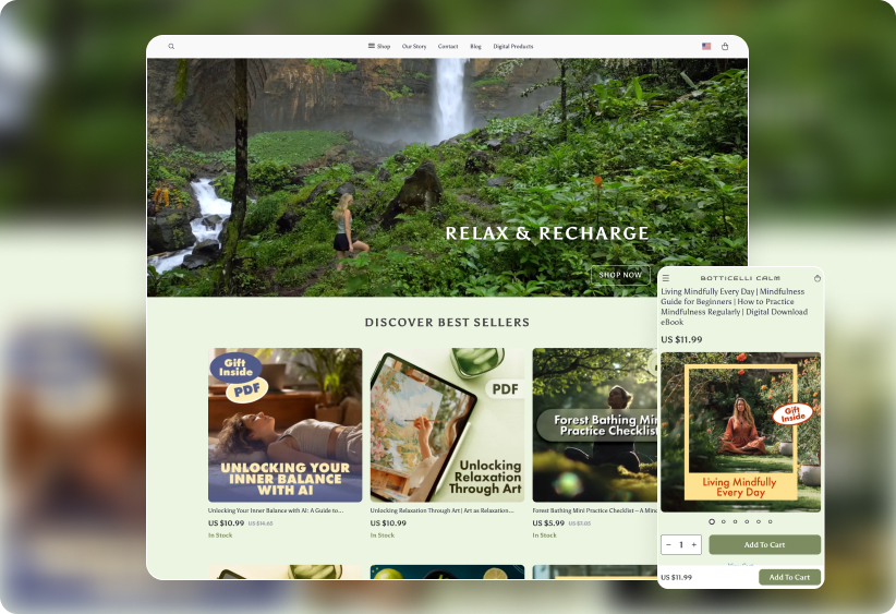 And to match the vibe, you also get a ready-to-use store design that is clean, calming, and built to convert, helping your products shine in the most relaxing way.