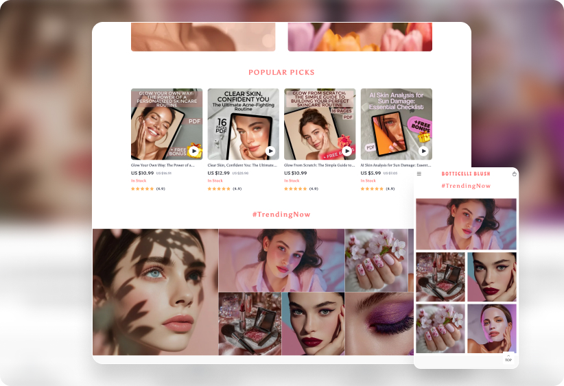 Beauty sells – and digital beauty sells fast. With the 500 Trending Beauty Guides Collection + Store Design, you get instant access to top-selling digital products covering skincare, makeup, haircare, and more.