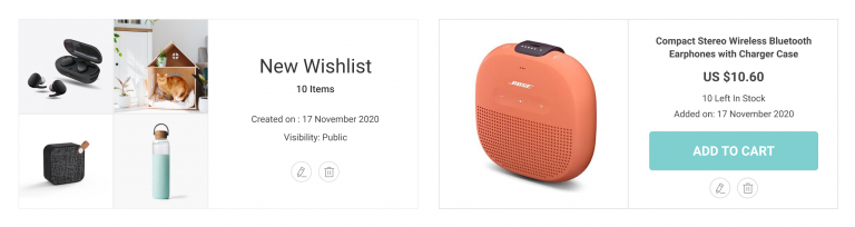 Just in a click, your buyers will be able to create their own wish lists with all your products they’d love to get. Plus, with the Wish List add-on, you can easily collect the email addresses of your shoppers to run targeted email marketing campaigns and keep reminding them about their favorite products.