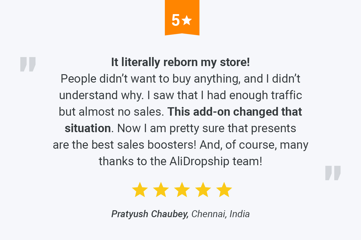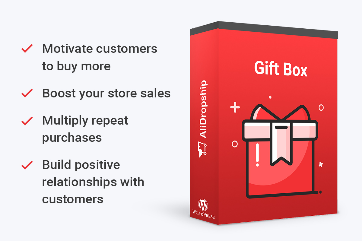 Meet Gift Box add-on – a simple solution to reward your customers with gifts that encourage clients to act now and to buy more. Set up your own rules of giving gifts and increase the revenue of your dropshipping store greatly!