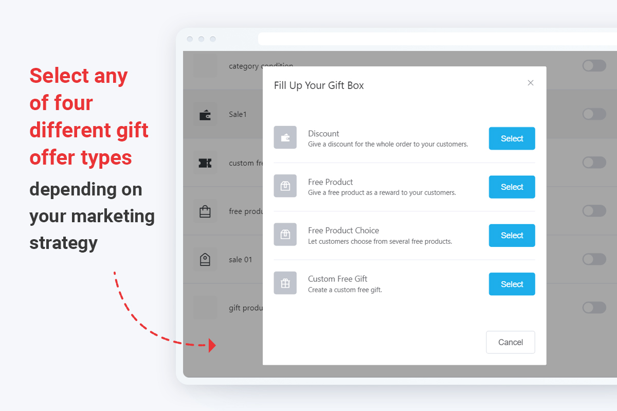 Show all your gift offers on a catchy and attractive pop-up for a better user experience
