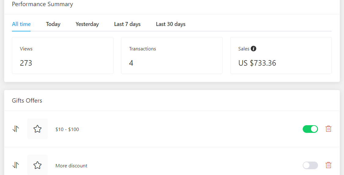 All your gift offers will be stored within the add-on so that you won’t have to waste your time creating them over and over again. Pause a gift offer when your campaign finishes and reuse it in the future if you need.