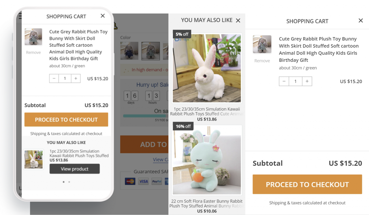 Meet the needs of your target audience and provide them with the best upsell experience. The Upsell add-on features the “Show on Mobile” option, meaning your webshop visitors can take advantage of your offers on any mobile device.