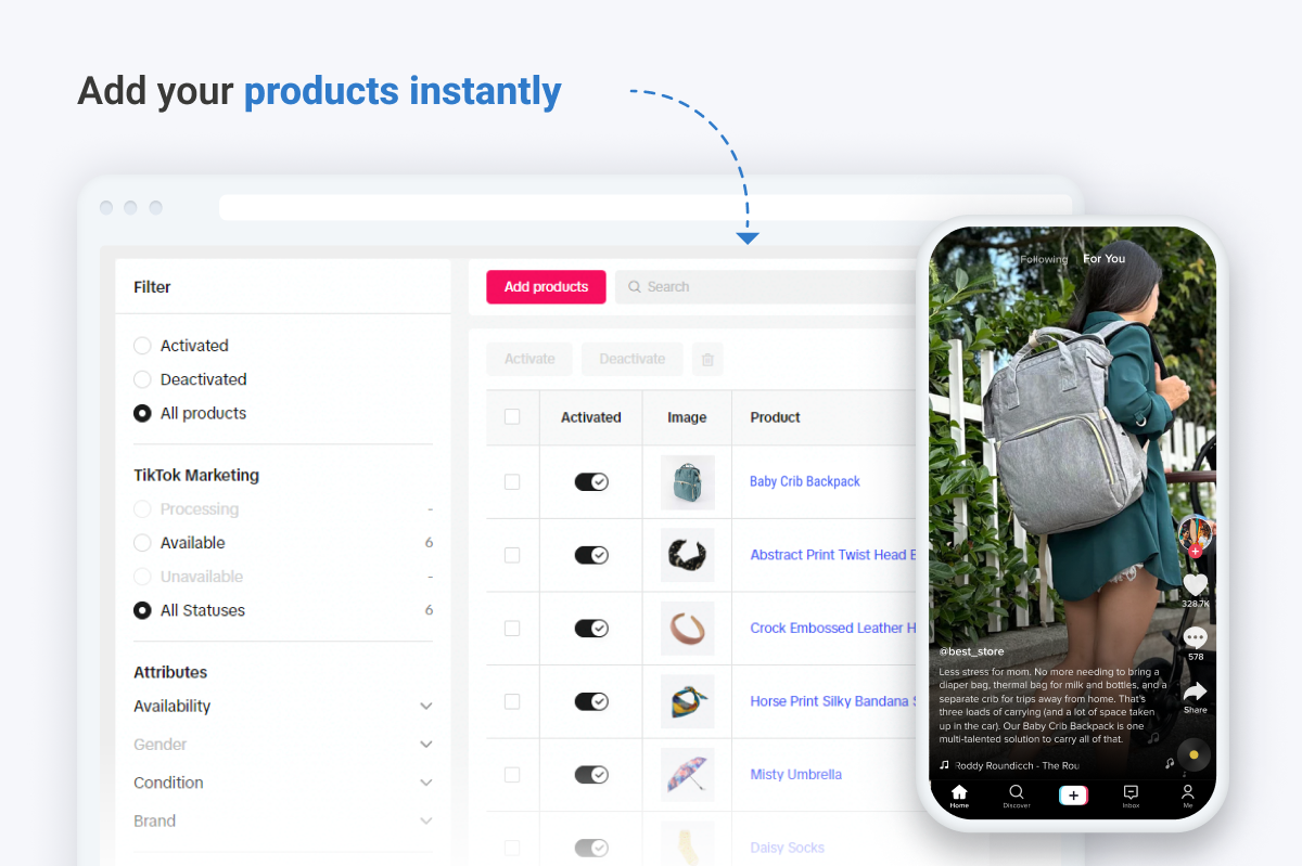 - Synchronize your store with Tiktok Product Catalog