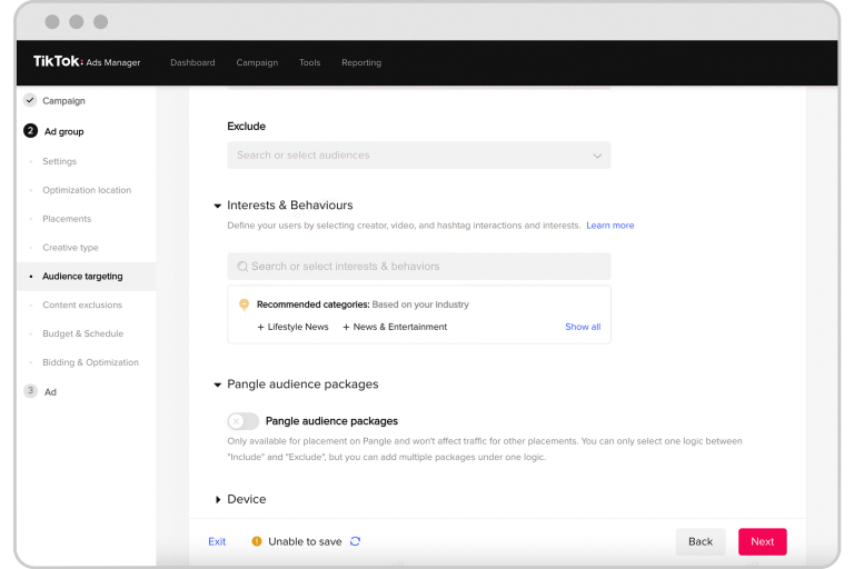 Leverage TikTok’s powerful algorithms to target users based on demographics, interests, behaviors, and even specific hashtags.