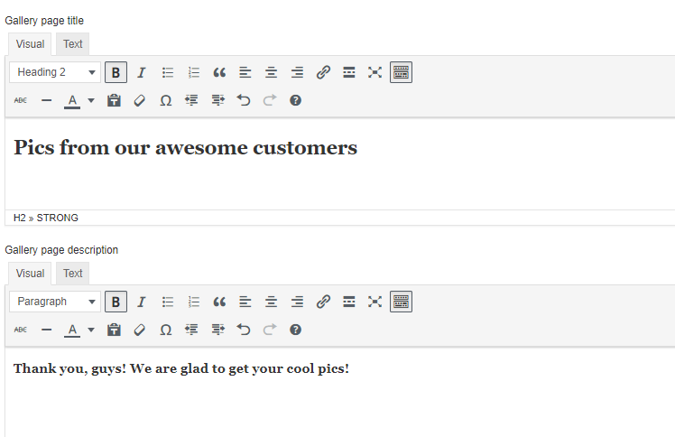 Craft a message unique to your website and audience with a customizable gallery title and subtitle. Plus, you can customize the text with several tools for a catchy look.