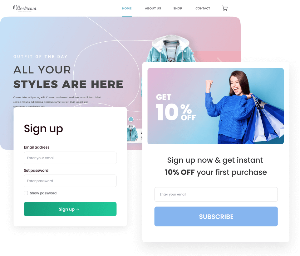 A combo of an irresistible popup and the mailing service collects your visitors’ emails automatically.
